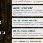 - De afspeellijst: De oefeningen worden naadloos en automatisch achter elkaar afgespeeld. Via de overzichtelijke lijst aan de zijkant (of onder de speler) zie je exact welke oefening er is geweest en wat er nog aankomt.